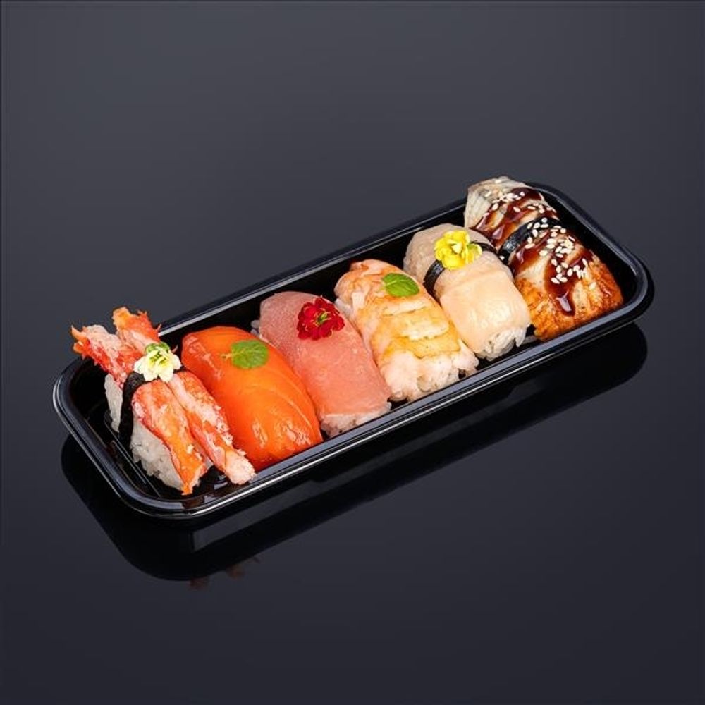 Суши сяке, суши с крабом, суши с тунцом, суши эби, суши с гребешком, суши с угрём * Соевый соус, имбирь, васаби в комплект не включены