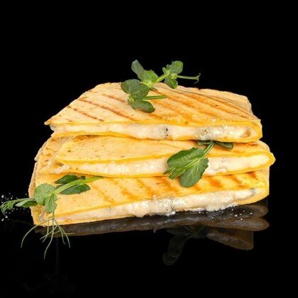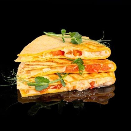 Креветка тигровая, сыр моцарелла, лук красный, чеснок, тортилья сырная