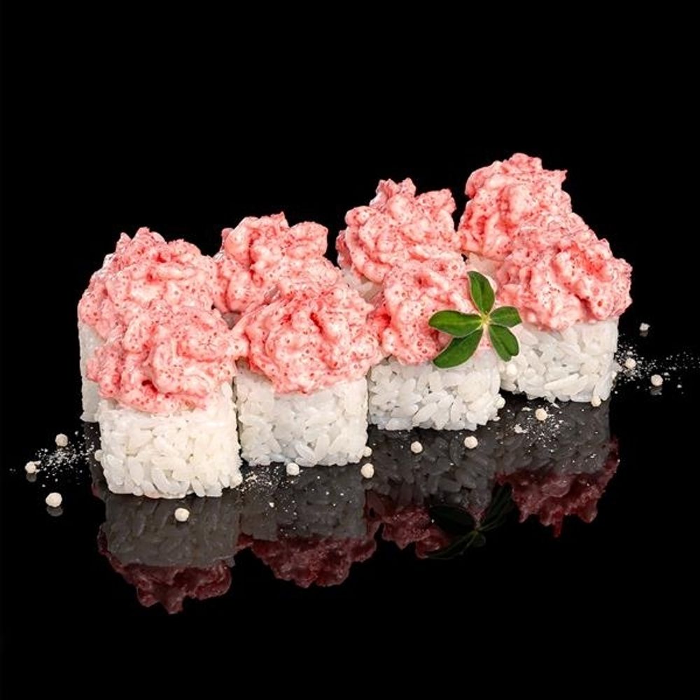 Сурими, сыр сливочный, рис, водоросли нори, замес лава (майонез, сурими, икра масаго) * Соевый соус, имбирь, васаби в комплект не включены