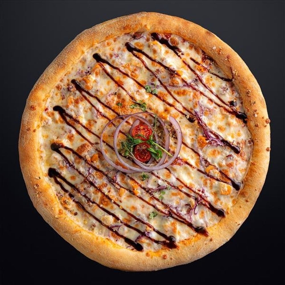 Пицца "Кура ББК" — это сытное и ароматное блюдо, которое обязательно порадует любителей насыщенных вкусов. Тонкое, хрустящее тесто щедро покрыто насыщенным томатным соусом, создающим яркую основу. Вкусная куриная грудка и хрустящий бекон придают пицце мясную сочность и аромат, а красный лук добавляет легкую сладковатую нотку и пикантность. Вся композиция объединяется расплавленной моцареллой, создавая мягкую и тягучую текстуру. Завершает вкус аппетитный соус барбекю, который придает блюду дымный, слегка сладковатый оттенок и делает каждую порцию особенно насыщенной и запоминающейся. Это идеальный выбор для тех, кто любит богатые и насыщенные вкусовые сочетания.