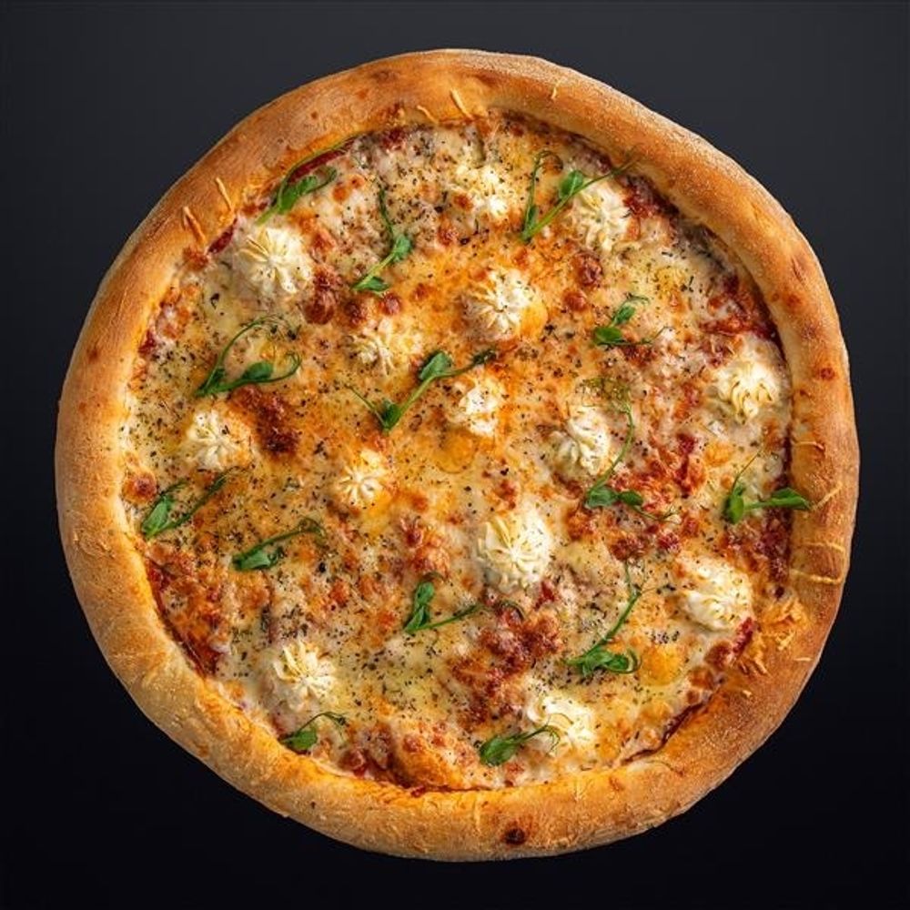 Пицца "4 сыра" — это истинное наслаждение для ценителей изысканных вкусов. Нежное, хрустящее тесто покрыто насыщенным томатным соусом, на котором гармонично располагаются сливочная моцарелла, насыщенный пармезан, изысканный дор блю и ароматный сыра креметта. Украшена смесью итальянских трав, которые придают блюду неповторимый аромат и итальянское настроение. Эта пицца станет идеальным выбором для тех, кто ценит богатство сырных композиций.