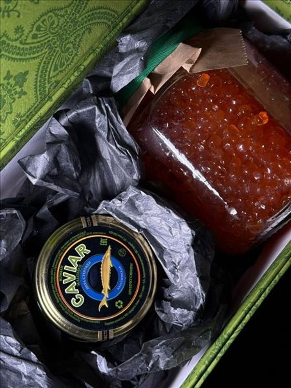 Камчатская красная икра чавычи 500гр, Черная икра стерляди 50гр