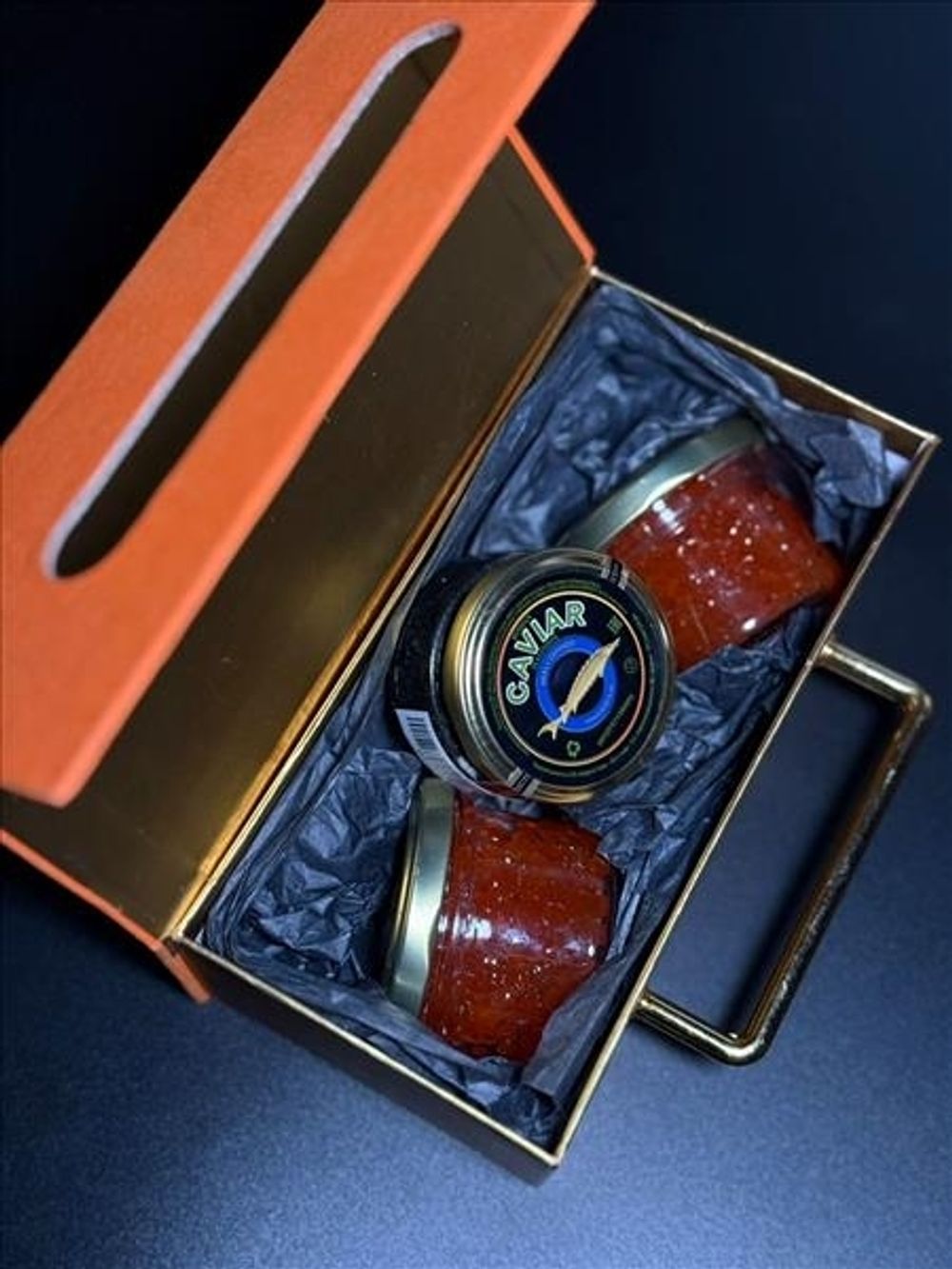 Камчатская красная икра горбуши 100гр, Камчатская красная икра чавычи 100гр, Черная икра стерляди 50гр